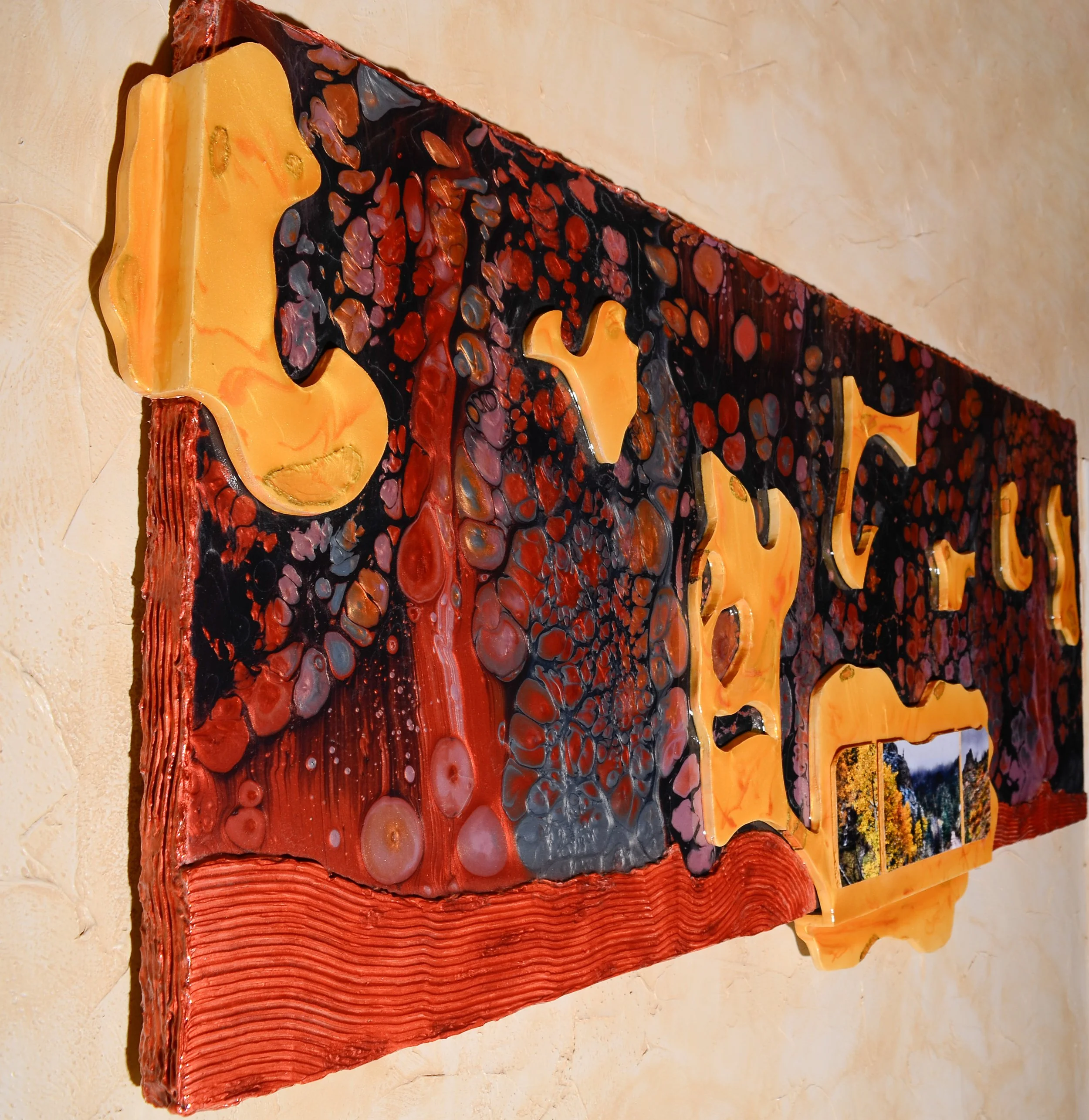 All of my creations use images taken by me, materials hand picked by me and custom fabricated in my studio.